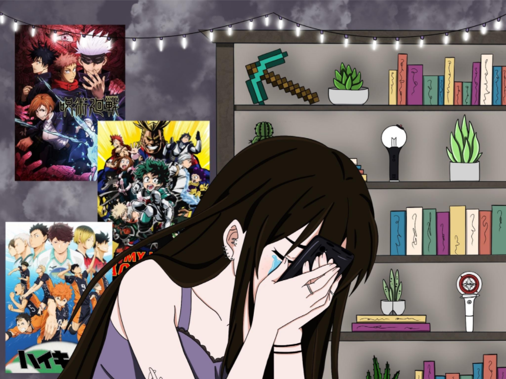 In the digital age, we have been given the opportunity to connect with people all around the world. Discover new things, meet people with similar interests, and expand our knowledge on anything we can imagine. Despite the advancement society has made with social media, there has been a continuation of deep rooted misogyny that has come along with it. I chose to focus on the issue of teenage girls being unable to express their interests on social media. According to an Online Harassment report from Pew Research Center, women have an 11% higher rate of being a target of harassment due to gender online, while men have a 5% chance. (Pamungkas et al. 2) As someone who is involved in specific interest communities on social media, I have seen time and time again the way teenage girls are targeted just simply for enjoying something. “Jane (2018) believes that gendered abuse and threats online cause “embodied” rather than “virtual” harm and that the behaviors present in virtual interactions can map onto more familiar forms of offline violence against women and girls.” (Kavanagh et al. 552) Research shows that there is a clear issue with the way women are treated on social media, and it can then fester into something larger, putting women in dangerous situations that can harm them and those around them. My goal with my creative piece was to visually portray how it feels to be targeted by misogyny on the basis that I have expressed my interest in something that many other people like as well.